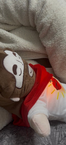 No puedo explicar el cambio en mi hijo. Desde que duerme con el peluche, se relaja muchísimo más rápido. La luz y la respiración le dan una paz increíble. Estoy ENAMORADA del producto.